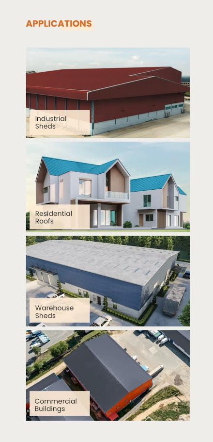 Choose from a wide array of roofing materials including colour coated profile sheets, polycarbonate, purlin. We source our materials from renowned brands like JSW, Tata, AMNS India, Bhushan Steel, Jindal, Apollo, ensuring quality and reliability.